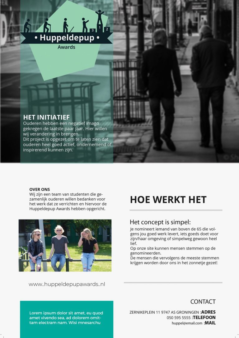 Voor de denkbeeldige “Huppeldepup” Awards heb ik deze flyer ontworpen. Dit was gedaan voor een schoolopdracht. Deze flyer staat ook op deze portfoliowebsite om een voorbeeld te geven wat ik kan wat betreft design van promotiemateriaal .